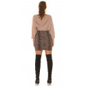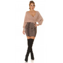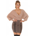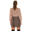Cappuccino svart fladdermusärm v-stickad klänning med tryck