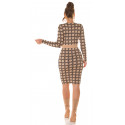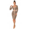 Cappuccino långärmad stickad klänning med tryckmönster med knappar. En snygg stickad klänning passar till många olika tillfällen. En vacker stickad klänning med knappkant är ett elegant val av kläder för bland annat dejter, vardagskläder och kvällssammankomster. En långärmad stickad klänning passar för många arbetsplatser och tillfällen som kräver representation. Tryckmönstret och knapparna är förtjusande detaljer. En midilång stickad klänning som formar sig efter figuren framhäver feminina former på ett stilrent sätt. En svart stickad cappuccinoklänning med spektakulära detaljer blir ett multifunktionellt och snyggt tillskott till garderoben. Med den här stickade klänningen slipper du många klädkriser! En elastisk stickad klänning är bekväm att bära.