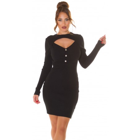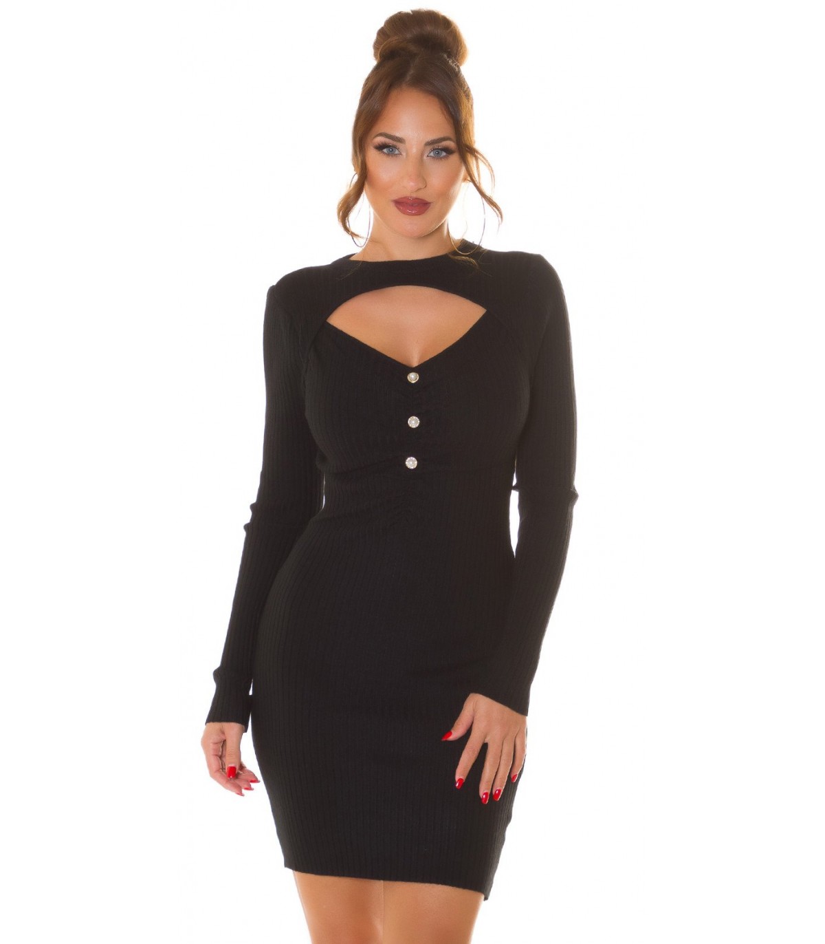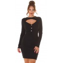 Svart 2in1 v-ribbad tröja klänning med kikhål och pärlor