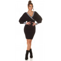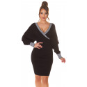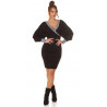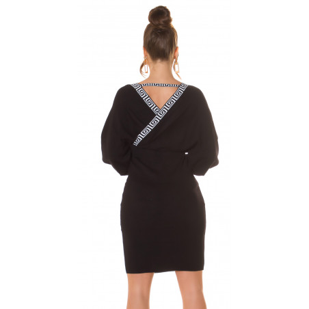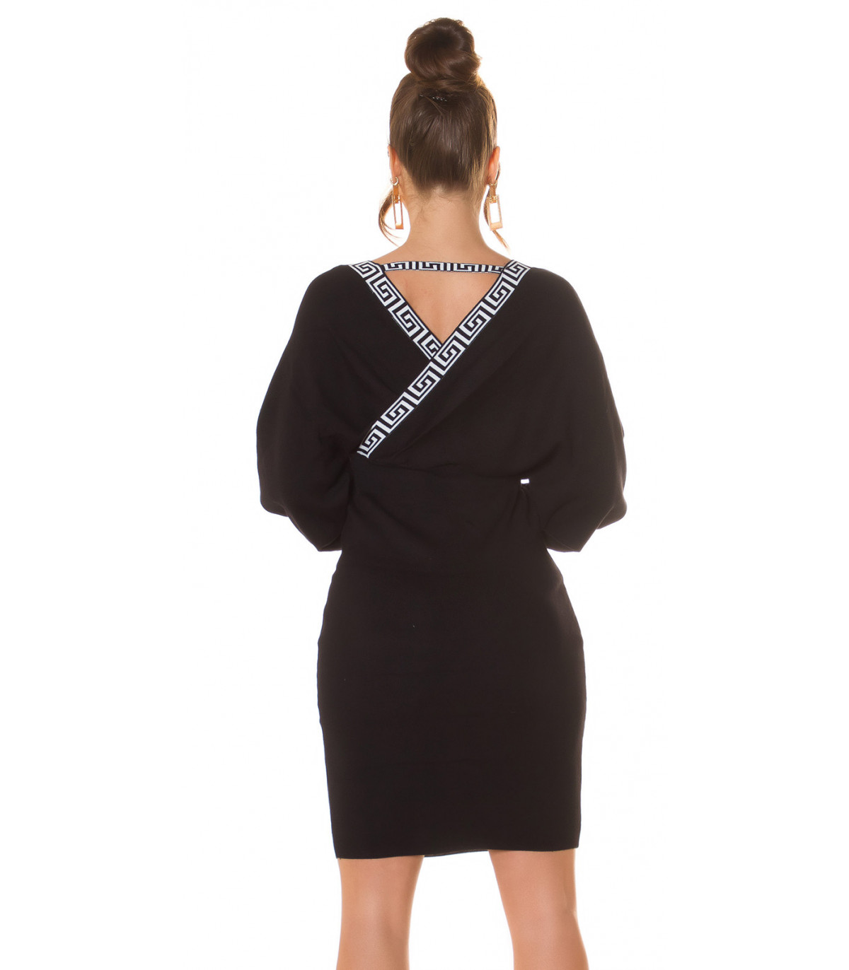 Svart fladdermusärmad omslagslook v-stickad klänning med mönster