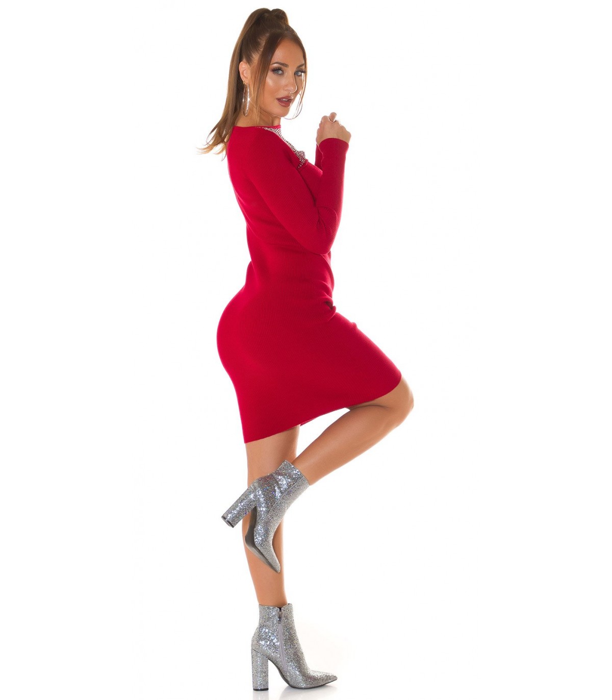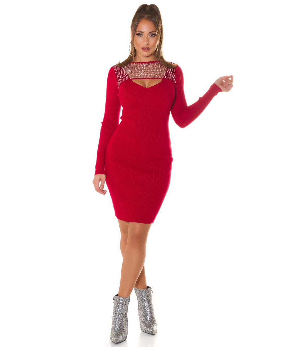 Bourgogne v-ribbinklänning med strassnät