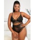 Svart spetsunderkläder med hög midja med snören (plus storlek)