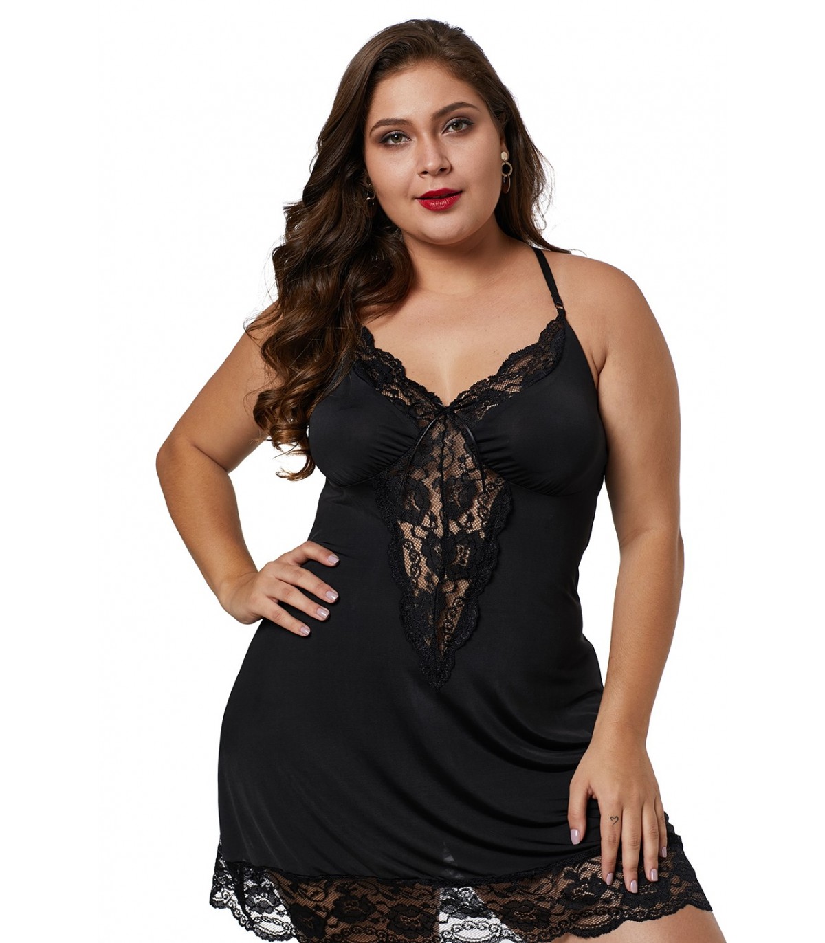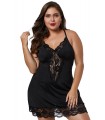 Svart spetsprydnad babydoll (plus storlek)