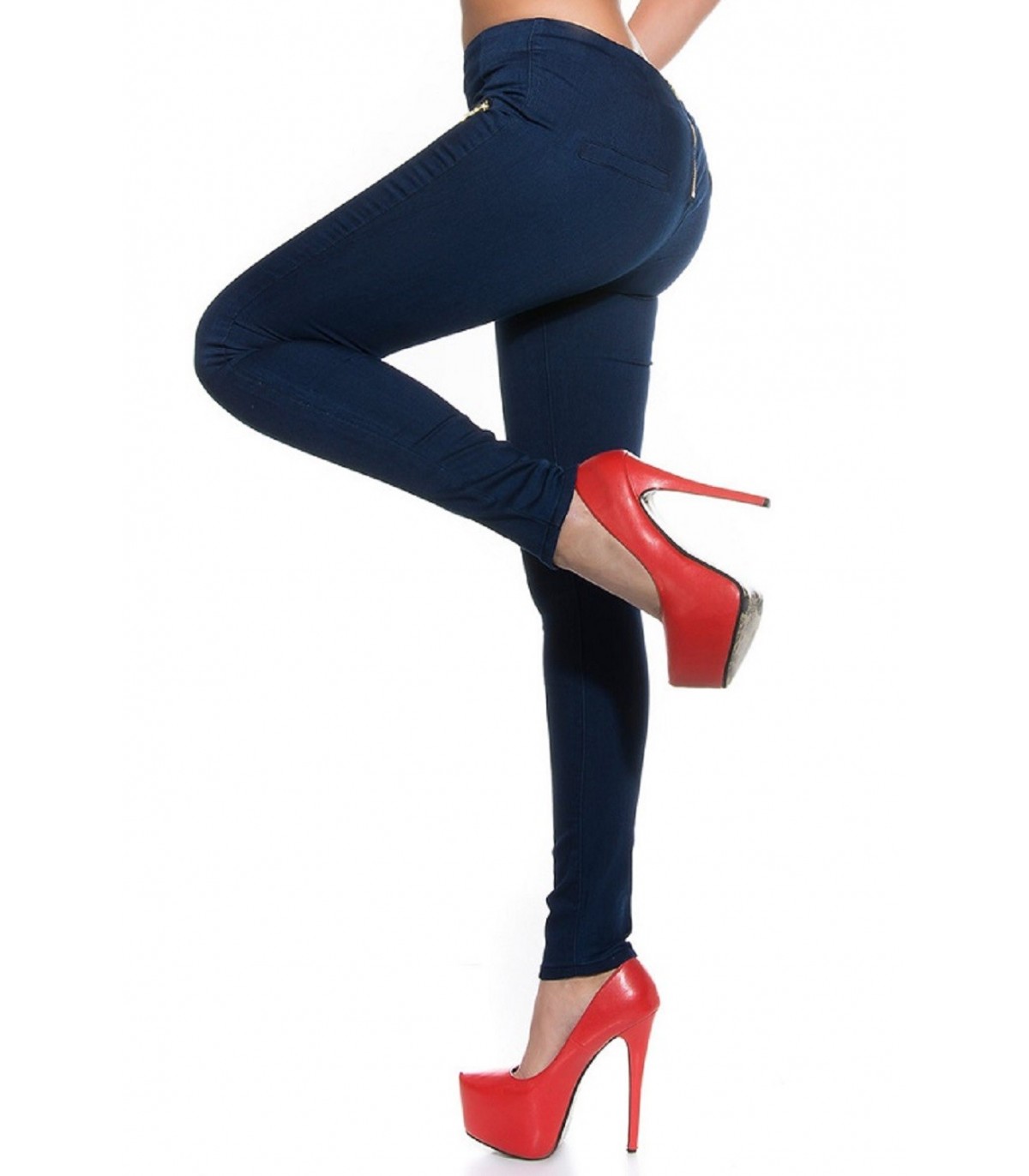 Blå hög midja jeggings med dragkedjor [SISTA CHANSEN]
