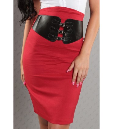 Röd blyertskjol med hög midja med bältesspänne [SISTA CHANSEN]