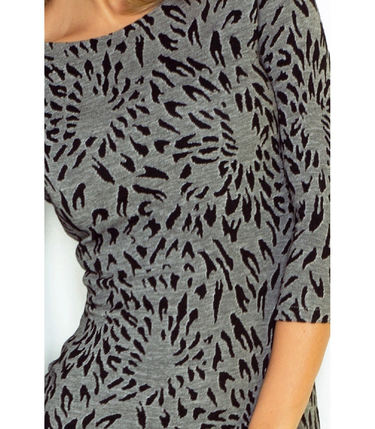Grå tryck mönster klänning. Klänningen är tillverkad i EU. Endast tillgängligt i den här batchen. Endast tillgängligt i den här batchen.