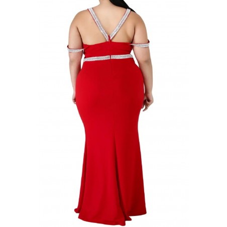 Röd strasband lång festklänning (plus storlek) [SISTA CHANSEN]