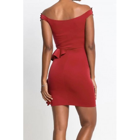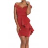 Röd spets-eded off-shoulder klänning med fla känsla [SISTA CHANSEN]