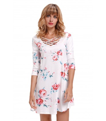 Vit blommönster lattittile-inbäddad klänning [SISTA CHANSEN]