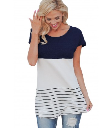 Blå- och vitrandig kortärmad skjorta med ränder [SISTA CHANSEN]