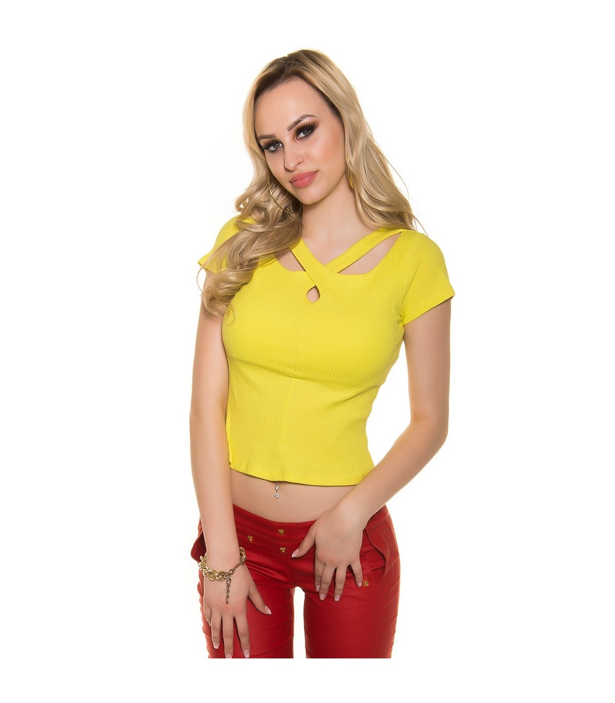 Koucla gul kortärmad utskuren skjorta [SISTA CHANSEN]