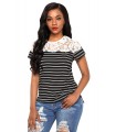 Svart kortärmad spetsprydd randskjorta [SISTA CHANSEN]