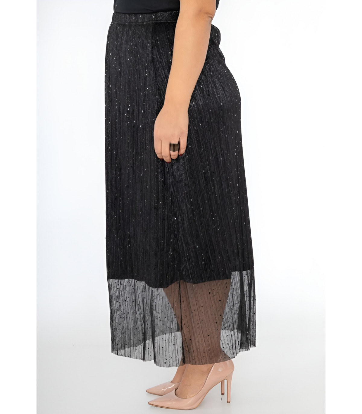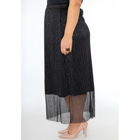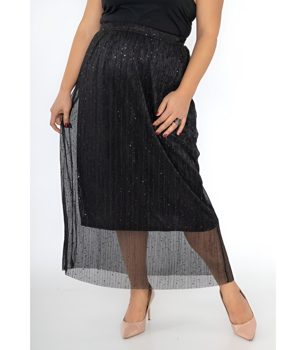 2W Paris musta paljettikoristeinen mesh-maksihame (plus size)
