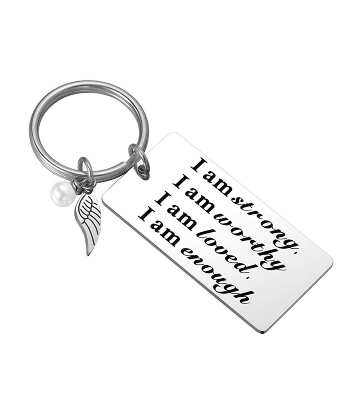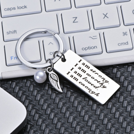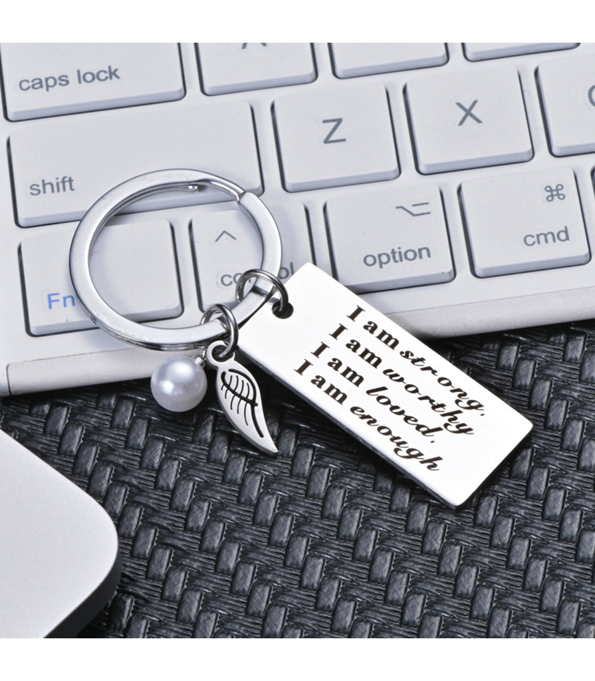 Nyckelring "Jag är stark. Jag är värdig. Jag är älskad. Jag är tillräcklig." (Jag är stark. Jag är värdefull. Jag är älskad. Jag är tillräcklig. nyckelring). En billig presentidé eller en bra påminnelse till dig själv.