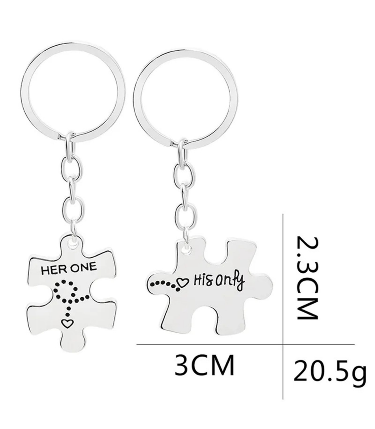 För par, passande nyckelringar med "HER ONE" och "HIS ONLY" texter. Romantisk presentidé för flickvän/fru för årsdag, alla hjärtans dag, etc.